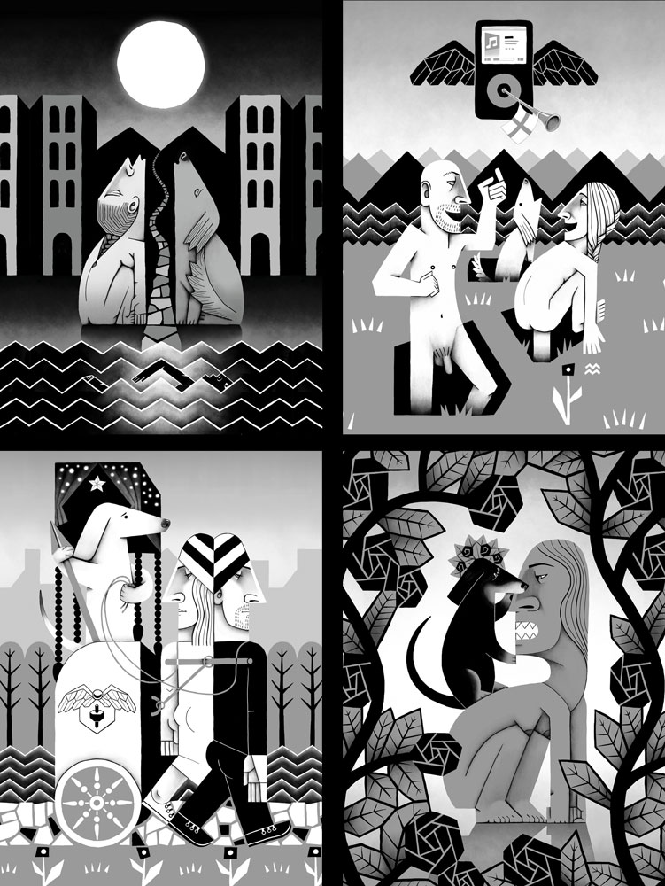Commercial clients for these illustrators have included the Rock and Roll Hall of Fame, Sundance Film Festival, Dream Works, Cartoon Network, Macy's, Sony, Facebook, United Airlines, Delta Airlines, MGM Resorts, Budweiser, Mattel, Hasbro, Levi's, Wild Turkey, Neiman Marcus, Fiat, Japan Airlines, Asahi, Fluevog, Jose Cuervo, IBM, and the US Postal Service.