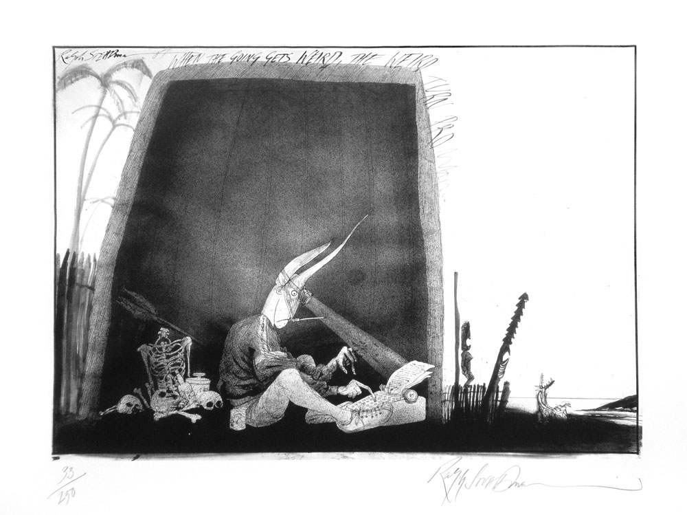 His own books include the lives of Sigmund Freud and Leonardo da Vinci and "The Big I Am," the story of God. With American writer Hunter S. Thompson he collaborated in the birth of GONZO journalism, the definitive book in the genre being "Fear and Loathing in Las Vegas," which was made into a feature film. He is also a printmaker. His prints include a series of etchings on writers from William Shakespeare to William Burroughs.