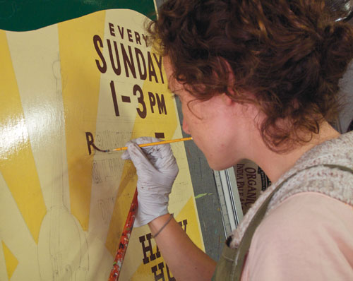 There was a time, as recently as the 1980s, when storefronts, murals, banners, barn signs, billboards, and even street signs were all hand-lettered with brush and paint. But, like many skilled trades, the sign industry has been overrun by the techno-fueled promise of quicker and cheaper. The resulting proliferation of computer-designed, die-cut vinyl lettering and inkjet printers has ushered a creeping sameness into our landscape. Fortunately, there is a growing trend to seek out traditional sign painters and a renaissance in the trade.