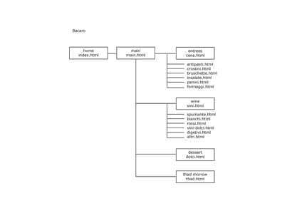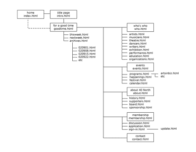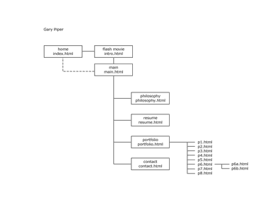 Planning a structure for your web site is an important first step in web design. Making a visual map of your site will allow you to see potential problems and make adjustments before you build your site. These examples show how other designers have solved their site architecture. You may download these PDF files and print them for reference.