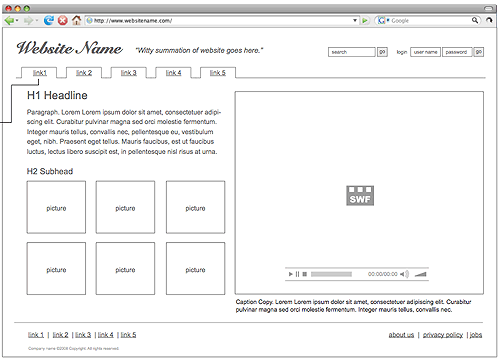 Some examples of wireframe layouts by various web designers: